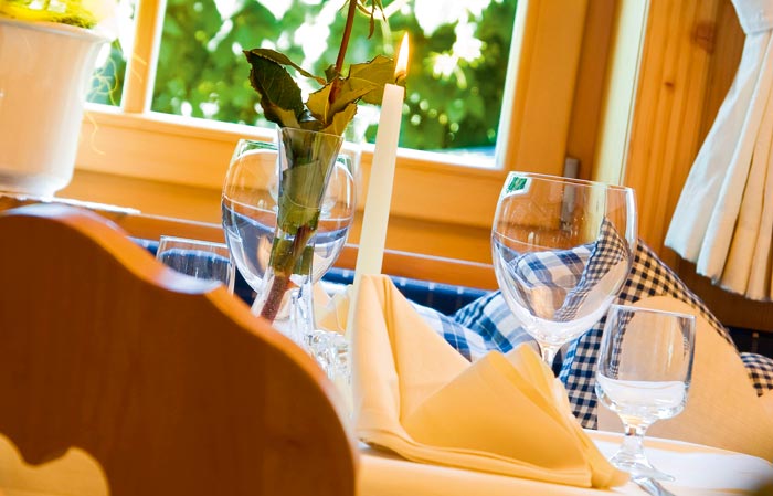 und Schlutzkrapfen, auch Fisch und Fleisch ist immer dabei. Im Sommer grillt der Chef persönlich auf der Terrasse. Neben einer saisonalen Basiskarte gibt es alle 2